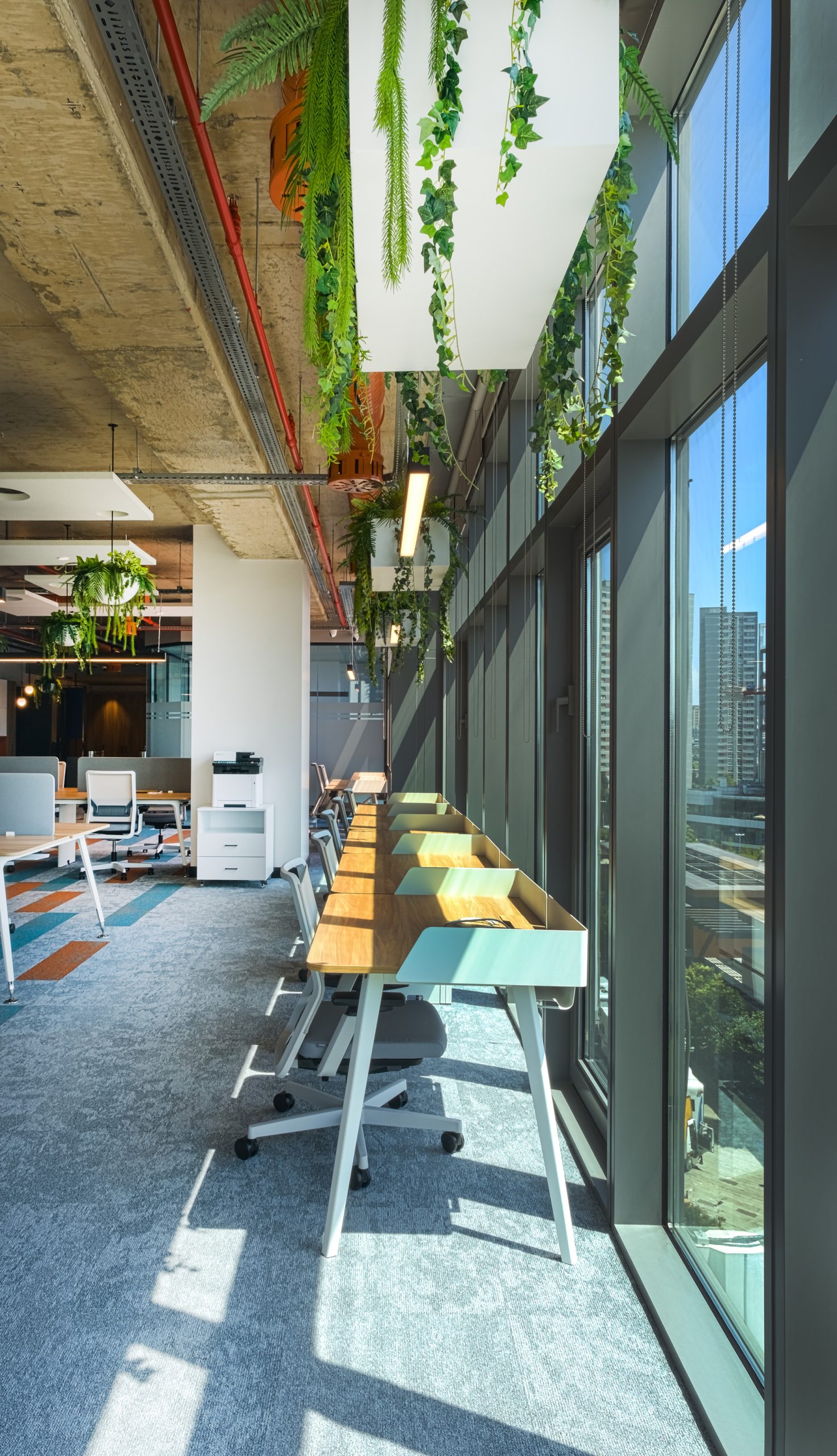 By prioritizing natural light infiltration, integrating acoustic panels, and incorporating indoor greenery, the space enhances productivity while placing user comfort at the forefront of the design.