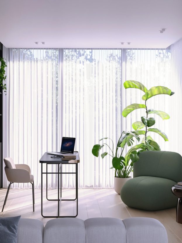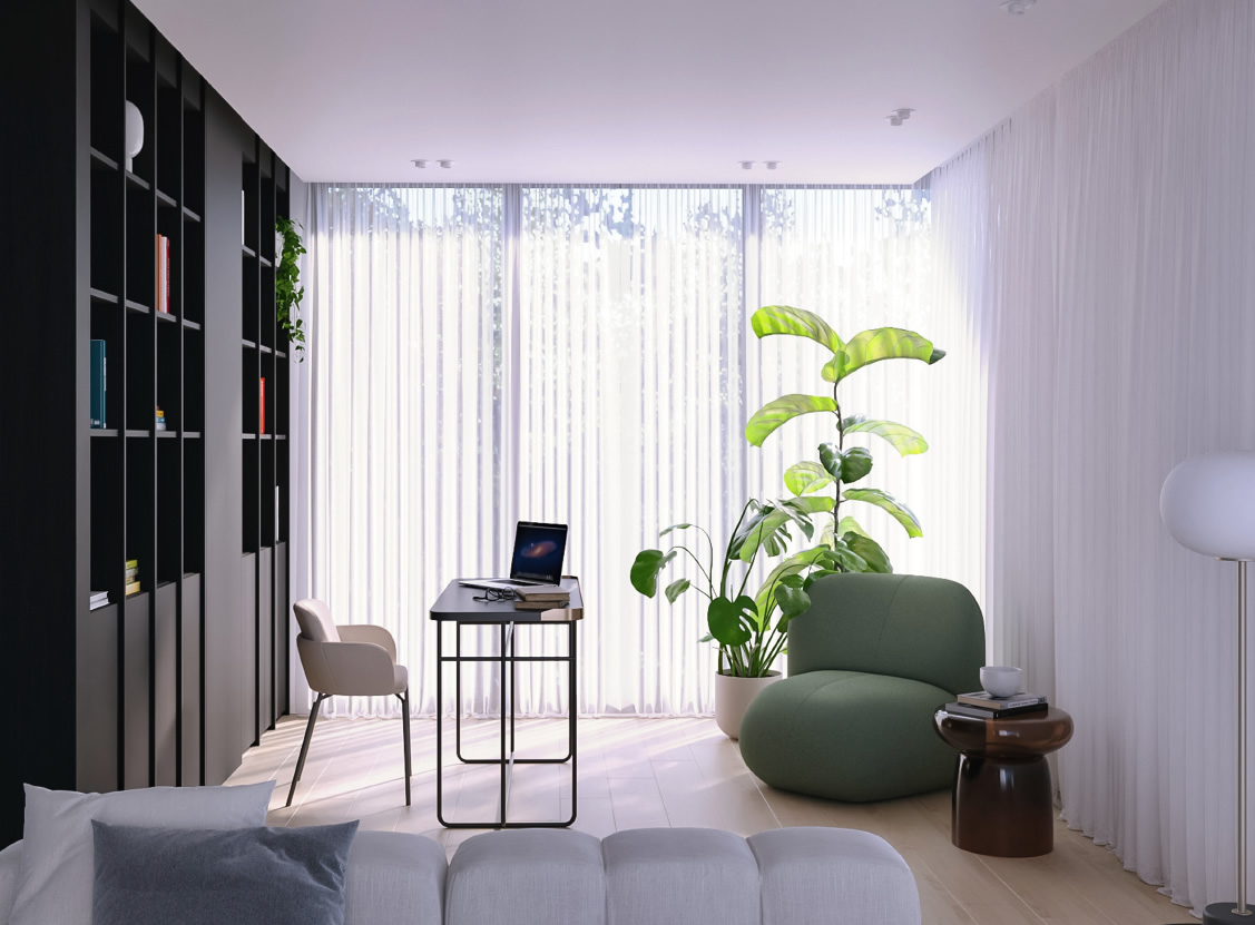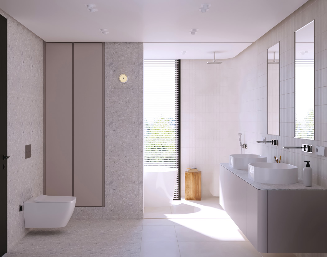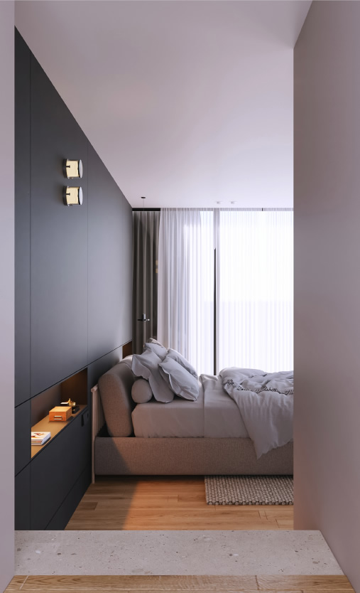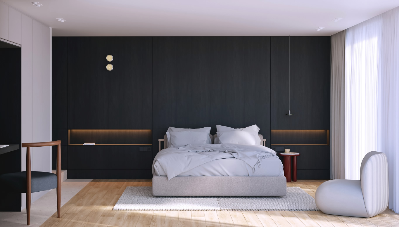 By combining minimalist silhouettes with a palette of warm materials, the project achieves a sophisticated yet inviting atmosphere.