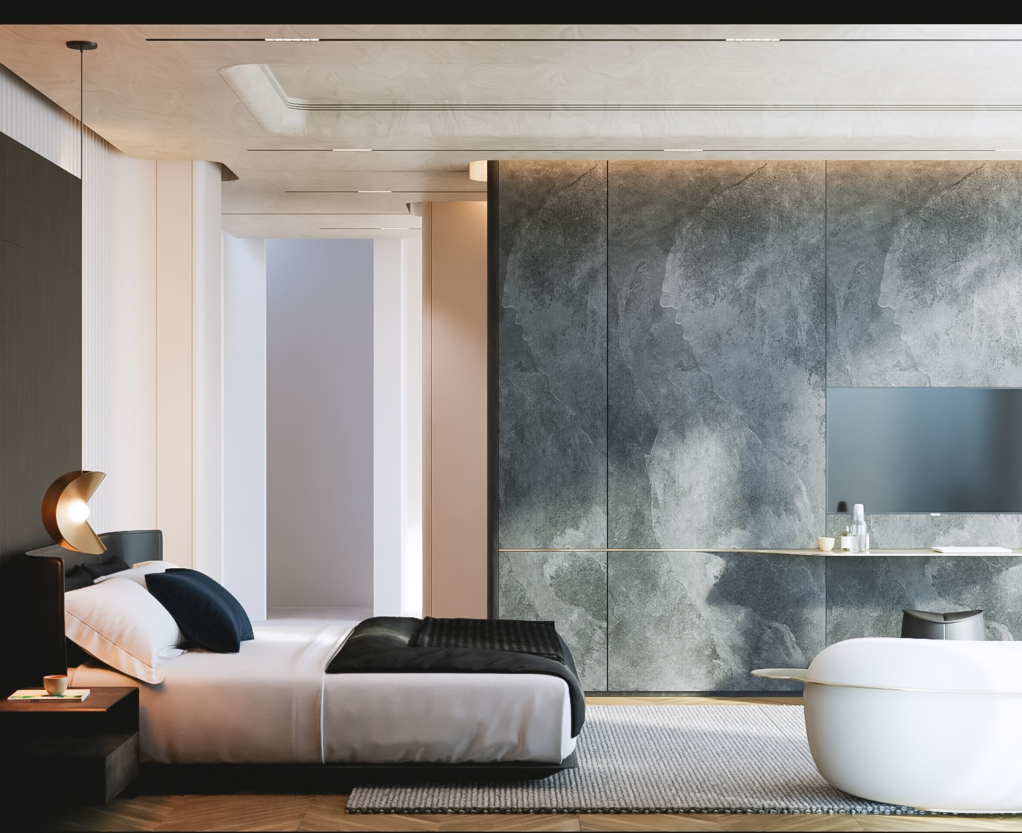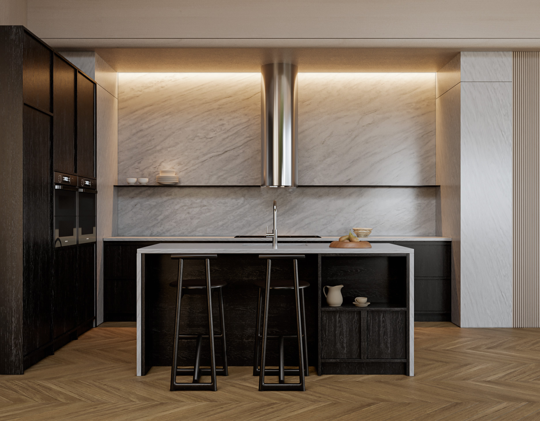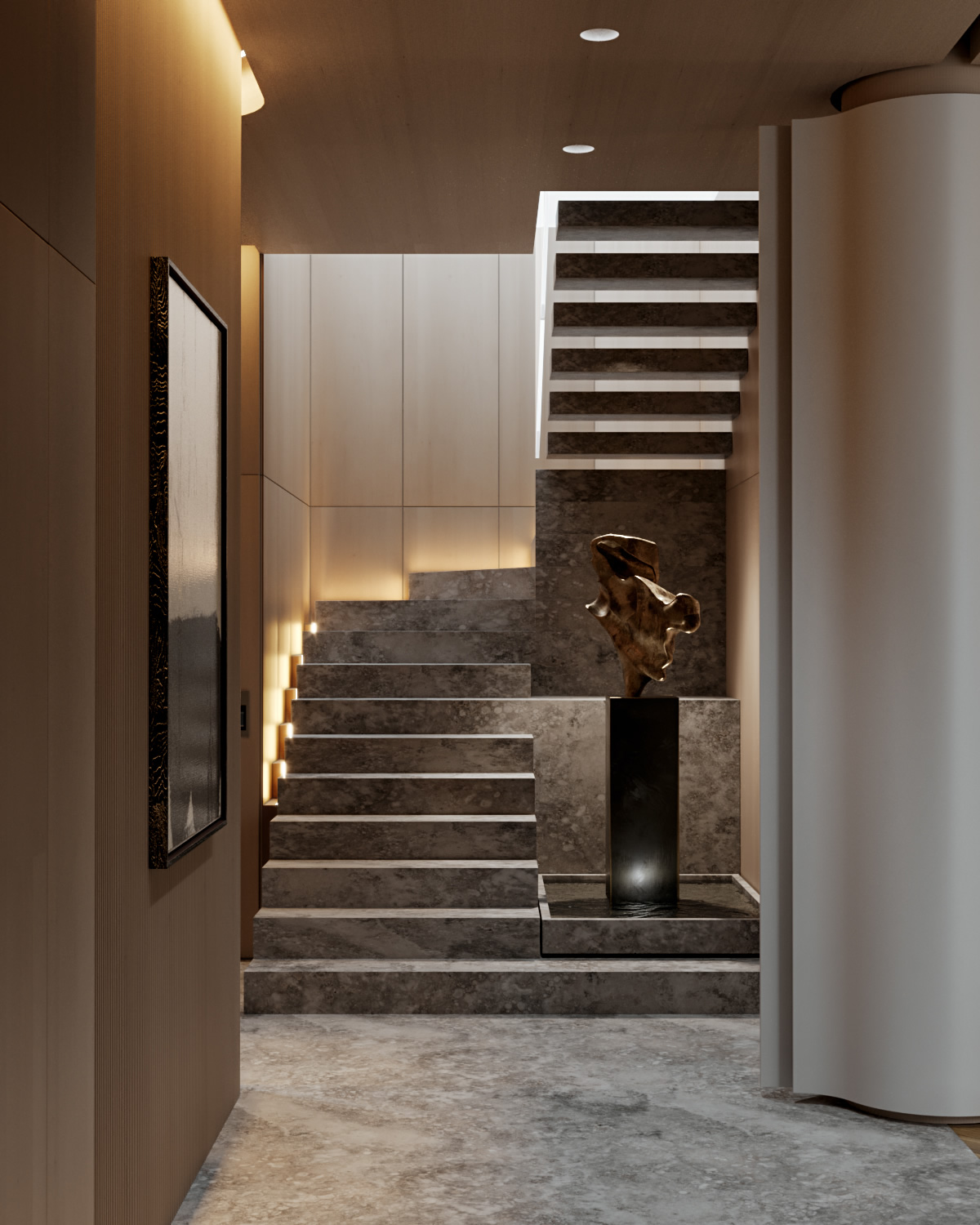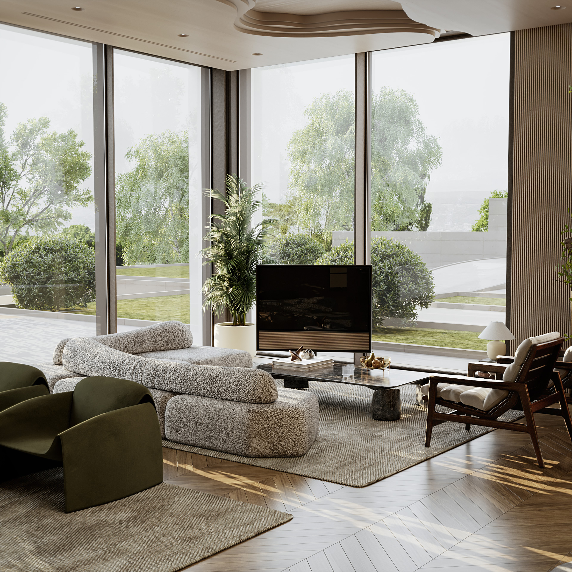 İç-dış mekân bütünlüğü hedeflenerek, manzara ile doğrudan etkileşim kuran geniş açıklıklar ve doğal malzeme kullanımı ön planda tutuldu.