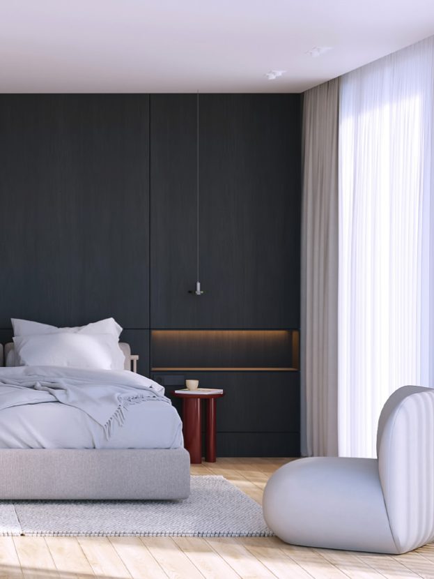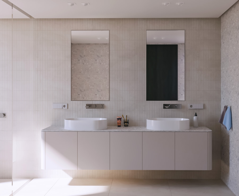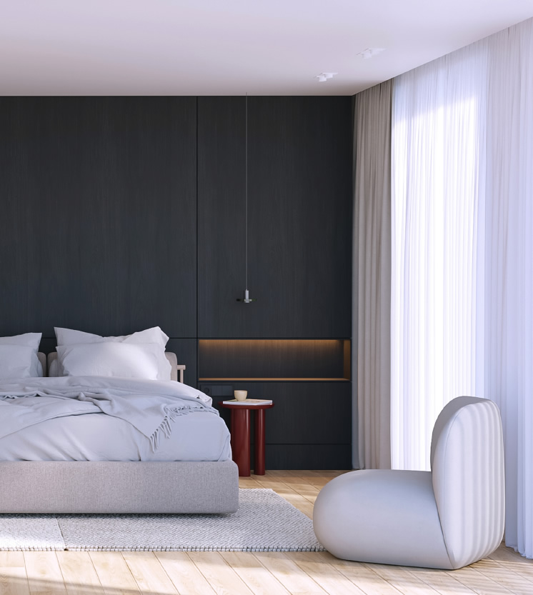 Minimalist çizgiler ve sıcak malzeme kullanımıyla davetkâr bir atmosfer oluşturuldu.