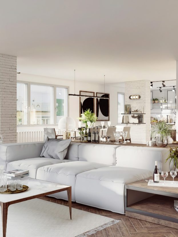 Doğal ışık, açık plan ve sıcak malzeme kullanımıyla yaşam alanına huzurlu ve modern bir kimlik kazandırıldı.